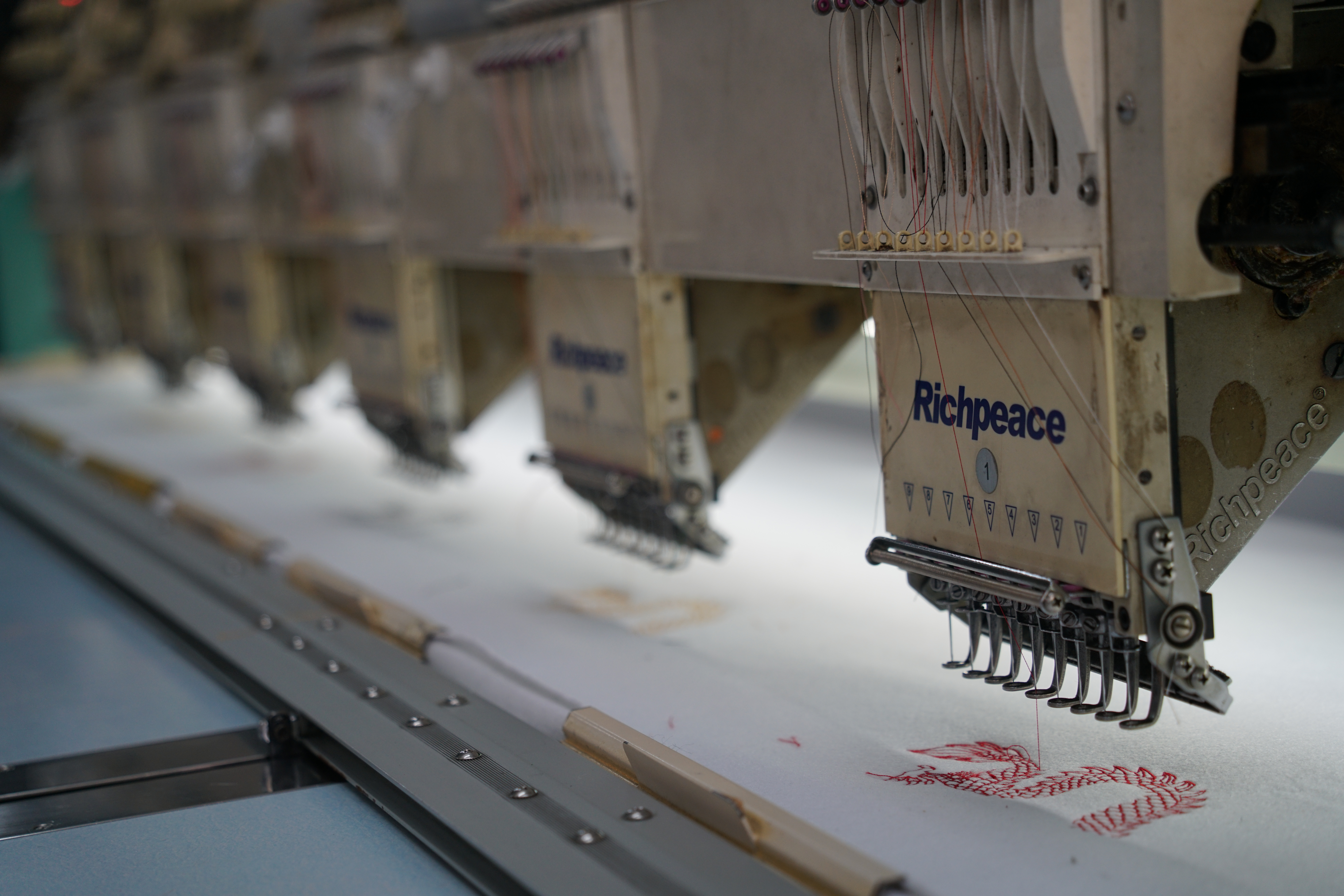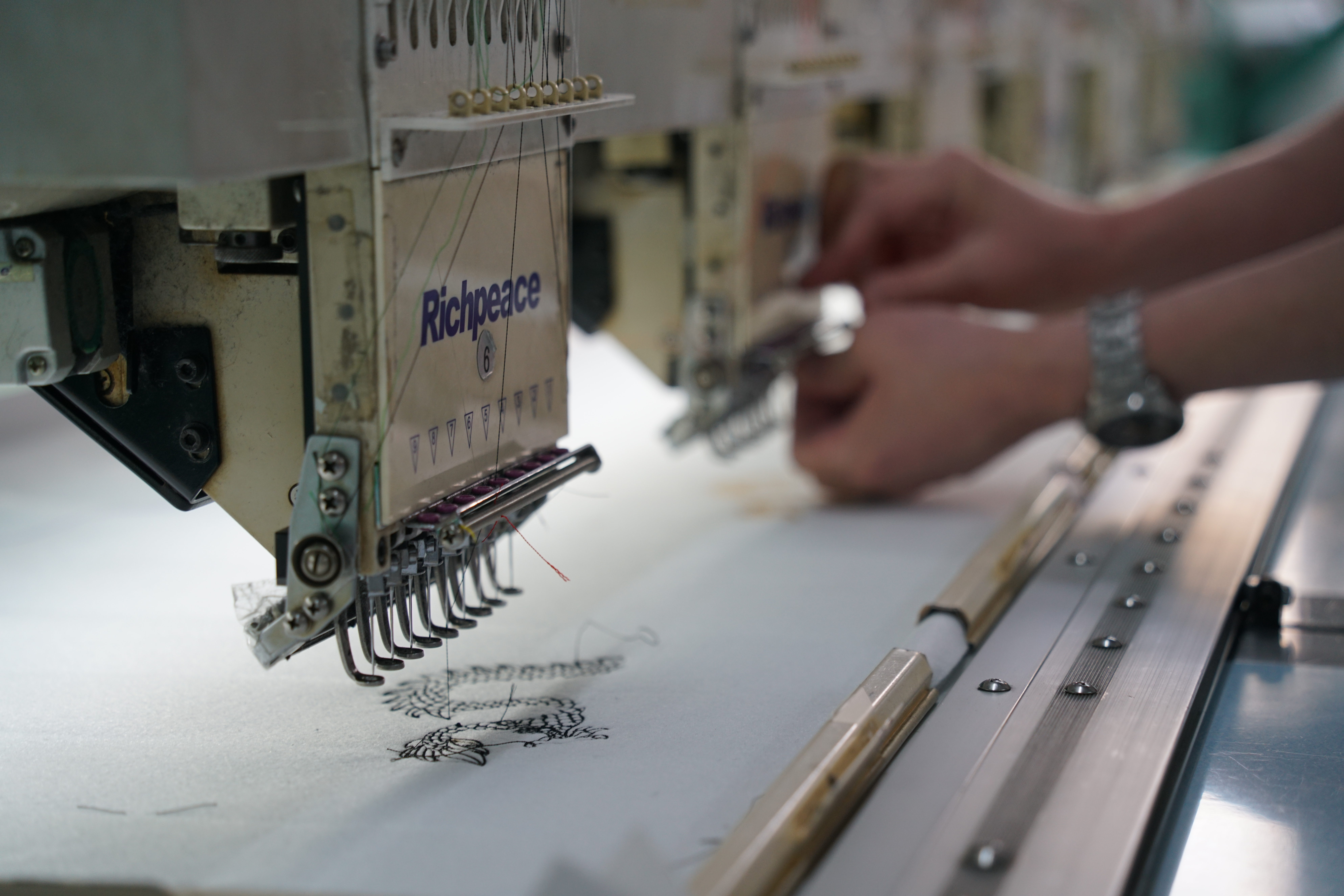 藝美引進最新柯式數碼印花技術, 將客戶圖案透過柯式印花機的網點,搭配熱轉印CMYK墨水,印於在轉印膠膜,再使用熱轉印機以高溫高壓的方式將轉印膜上的圖樣轉印衫製品表面。